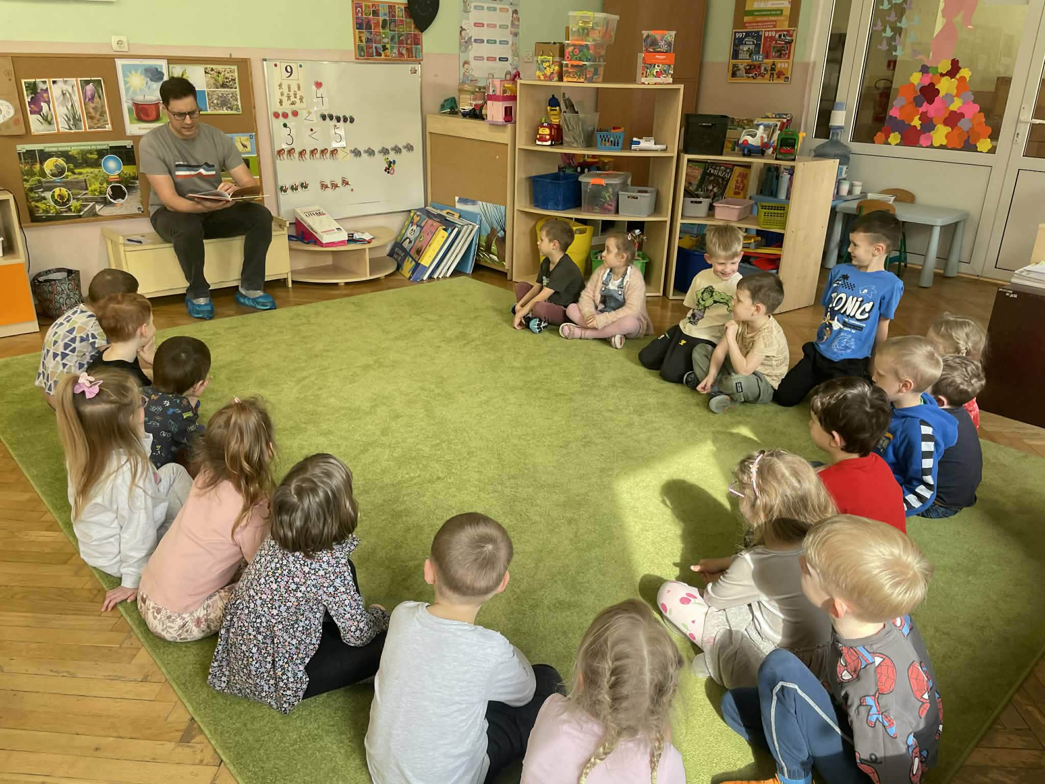 W grupie III odbyło się głośne czytanie w ramach Akcji "Czytam dzieciom". Zaproszony gość- tata Kacpra, przeczytał dzieciom pozycję książkową pt. ,, Szpilka" .