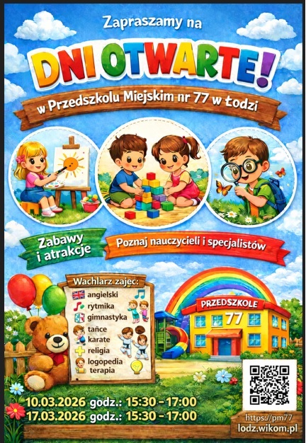 Zapraszamy na DNI OTWARTE w naszym przedszkolu , które odbędą się 10 i 17 marca w godz. 15:30- 17:00