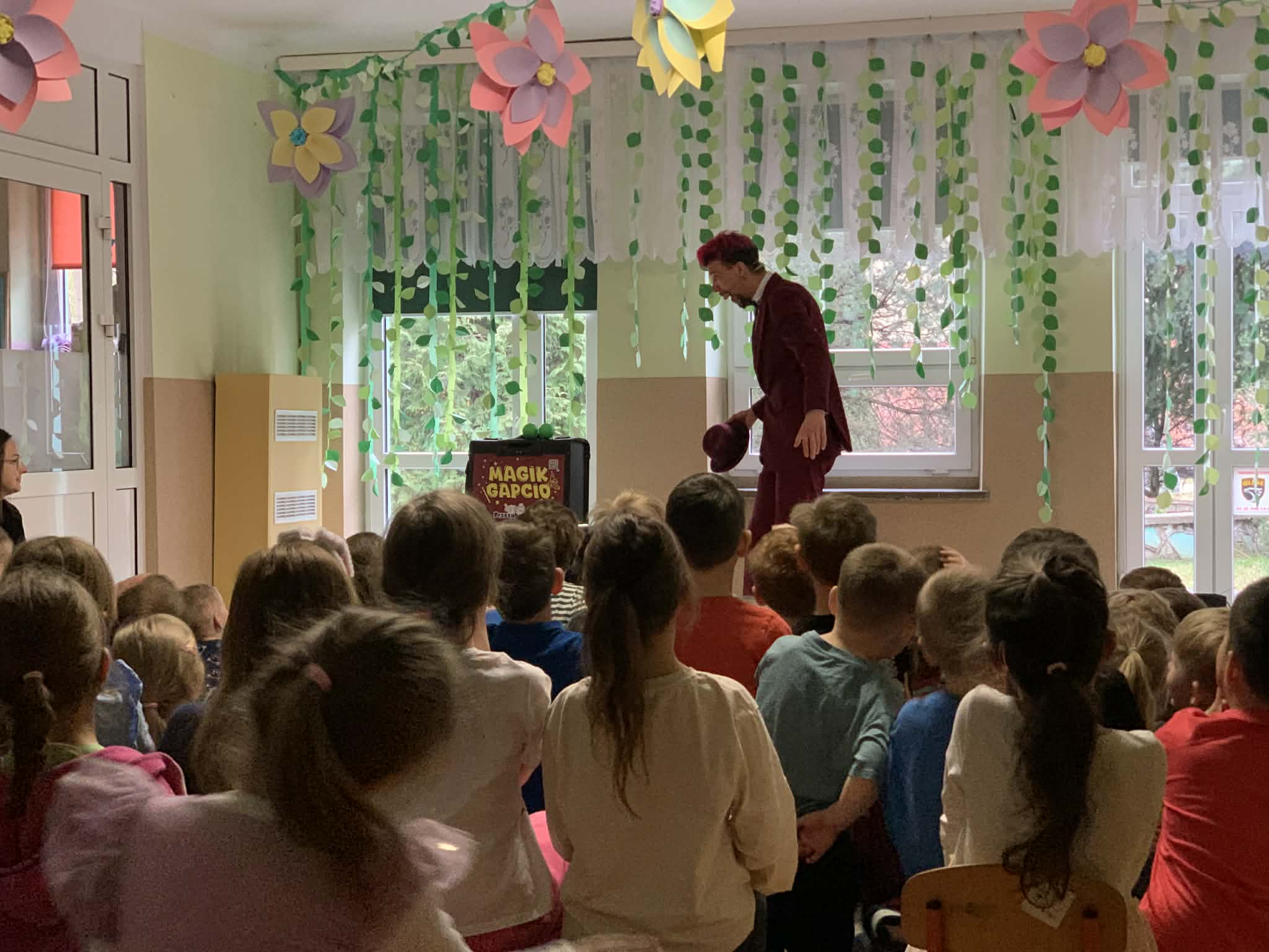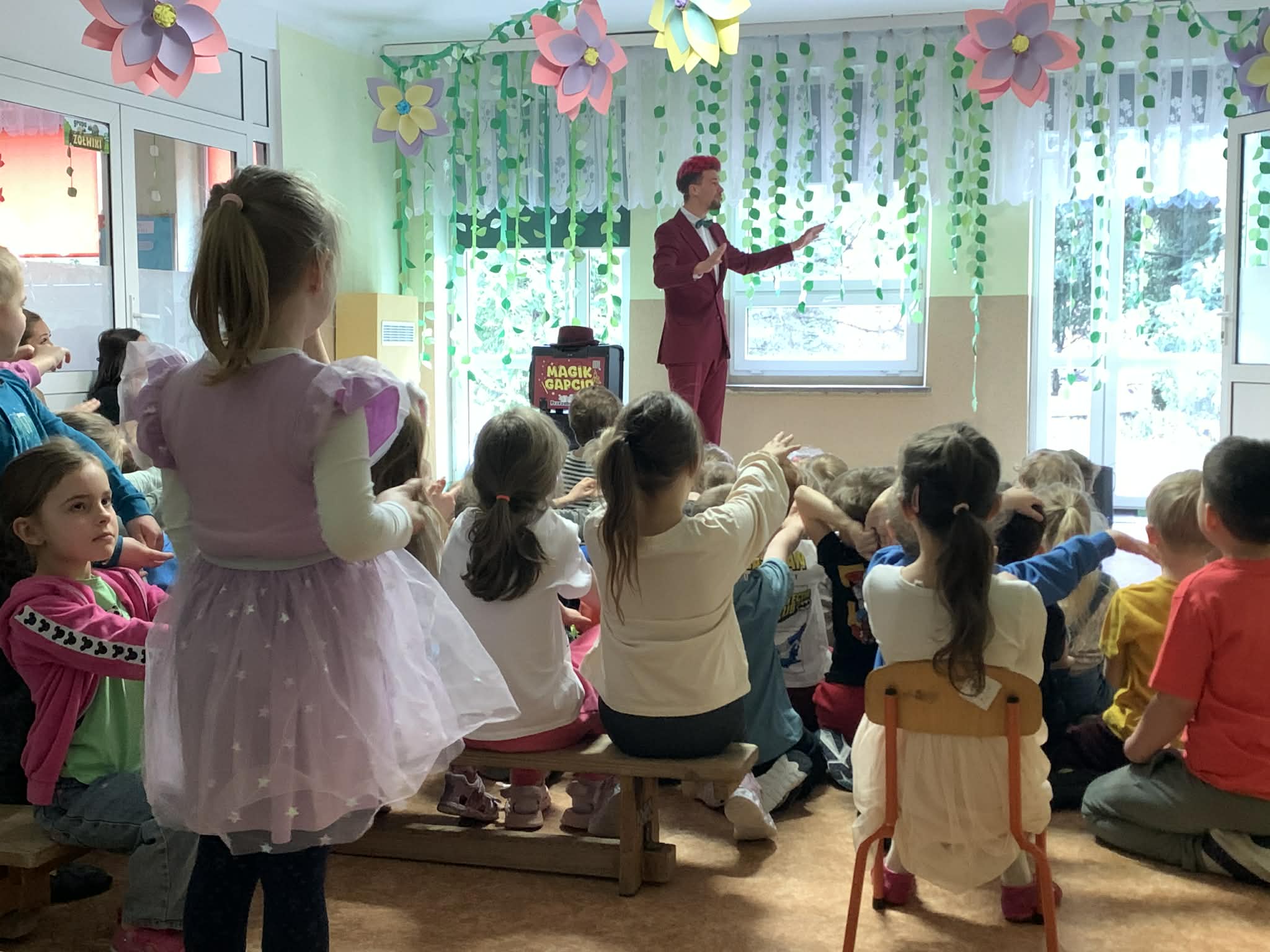 Podczas widowiskowego występu przedszkolaki z zapartym tchem śledziły pojawiające się rekwizyty i niesamowite sztuczki, które wywołały mnóstwo radości. Najwięcej emocji dostarczyła możliwość wspólnego czarowania, dzięki czemu dzieci mogły poczuć się jak prawdziwi asystenci magika.