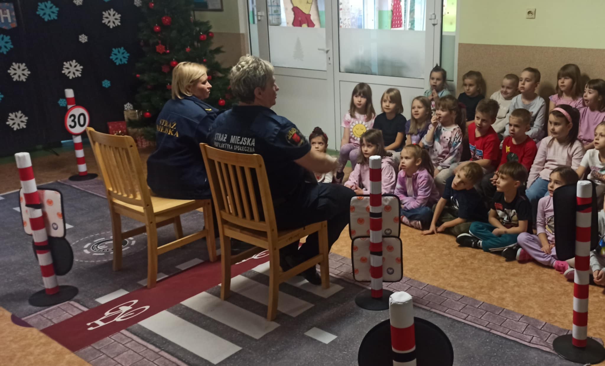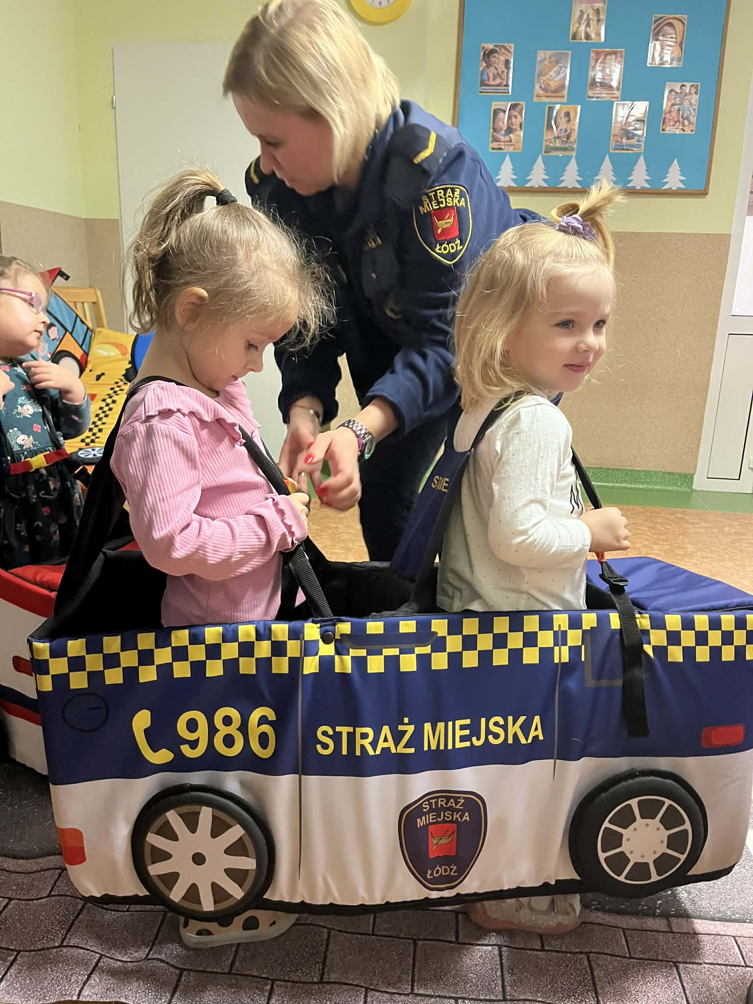 Dzisiaj przyjechały do nas dwie funkcjonariuszki ze Straży Miejskiej. Pani opowiadały o zachowaniu bezpieczeństwa w różnych sytuacjach. Przypomnieliśmy też sobie numery alarmowe.