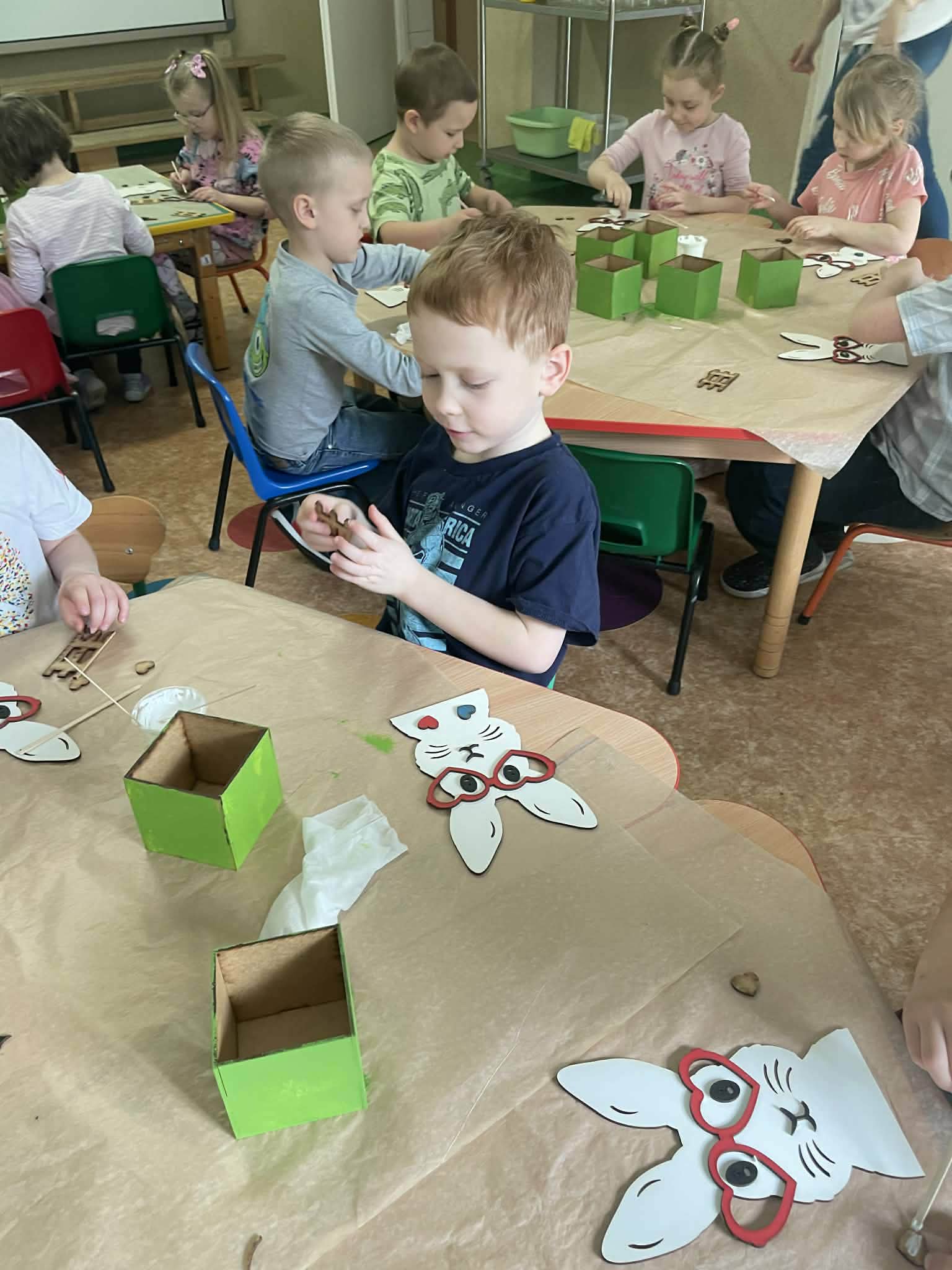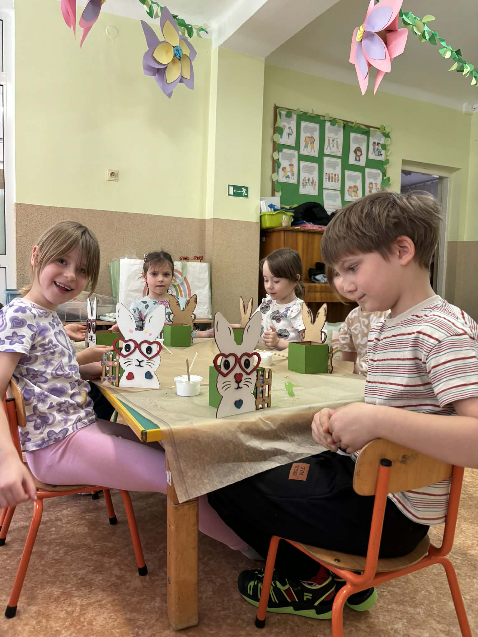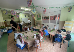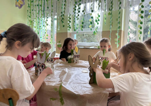 Podczas zajęć dzieci z ogromnym zaangażowaniem tworzyły osłonki na wiosenne kwiaty. Była to okazja do rozwijania kreatywności i zdolności manualnych.