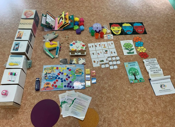 Pomoce będą wykorzystane podczas zajęć specjalistów z dziećmi w gabinecie terapeutycznym w Przedszkolu Miejskim nr 77 w Łodzi.